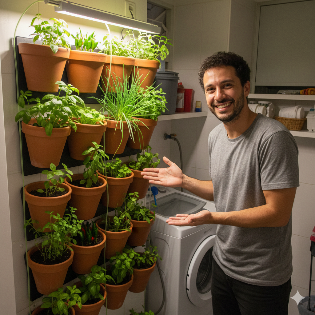 "Meu apartamento é minúsculo, mas o curso me mostrou como aproveitar a parede da lavanderia para criar uma horta vertical. As aulas sobre escolha de vasos e irrigação foram cruciais. Tenho cheiro-verde fresquinho o ano todo!"